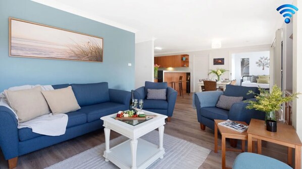 All linen (sheets and bath towels) is supplied for your stay and included in the tariff. For the comfort of our guests, we do not triple-sheet. All beds have a fitted sheet, a flat sheet and a quilt with a full cover. BYO linen for the complimentary travel cot. BYO beach towels.
