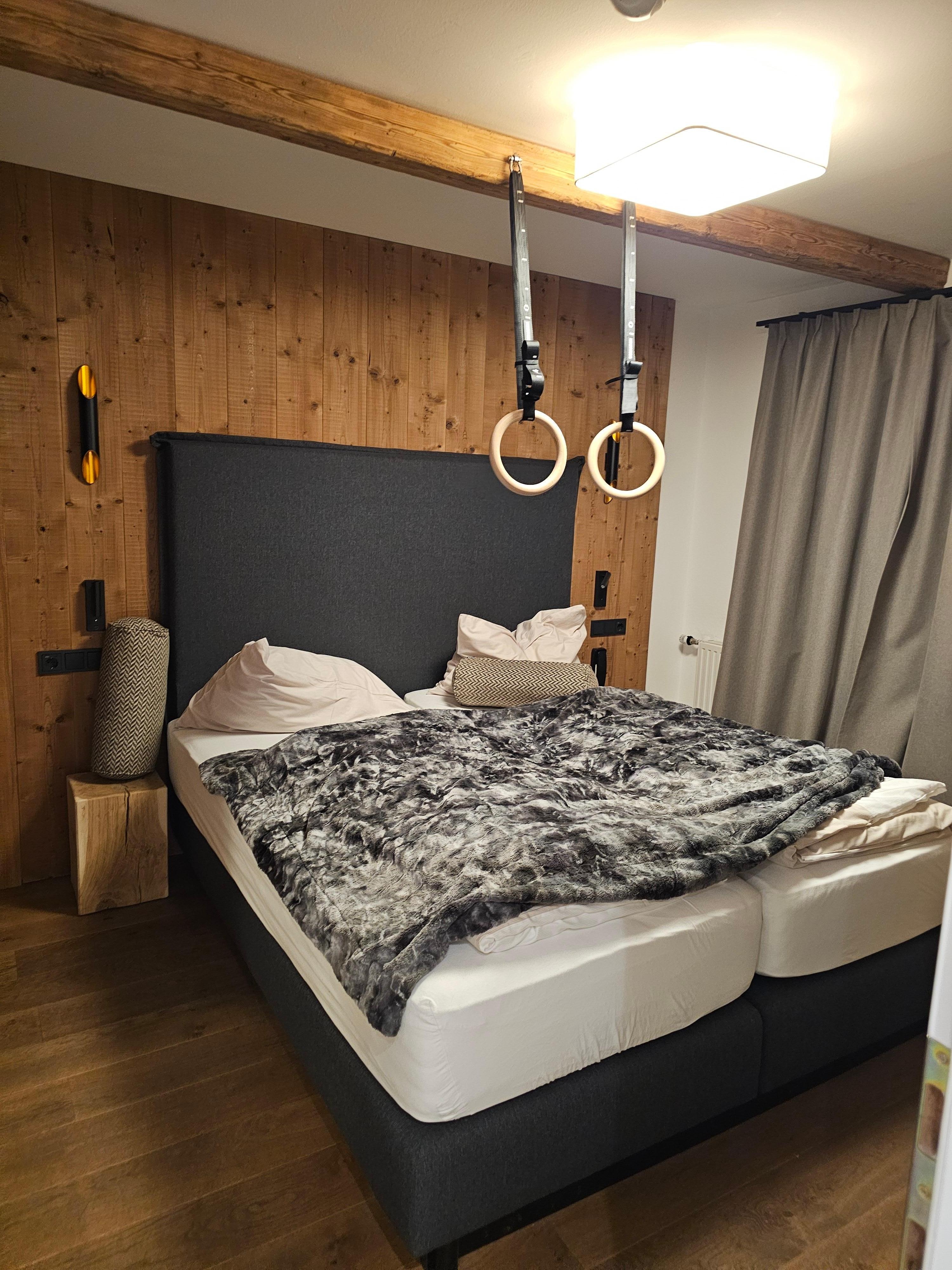 Die Zimmer sind genug gross und die Kinder haben ihr Zimmer mit Turm und Ringe geliebt. Auch das Schwimmbad ist genau richtig. Wir haben die Familiensauna super gefunden. Von dort gibt es ein Fenster, wo man direkt auf das Kinderbecken sehen kann.