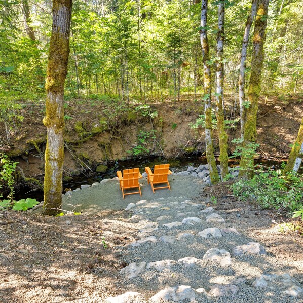 -Access to private creek and 6.5 acre property -Private hot tub -Private cottage -Game room with ping pong, pop a shot basketball, TV, wine fridge -Fully stocked chef's kitchen -Coffee + tea bar with cream + sugar -Lawn games -Weber propane grill -Outdoor patio + private deck off of primary bedroom -Free high speed internet