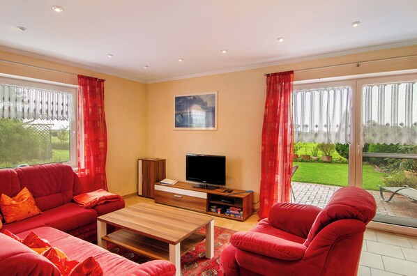 The vacation home is situated in a quiet residential area and offers unobstructed views of the nearby fields. Public transport links are within walking distance. The nearby highlights include Hooksiel Water Ski Lift, Harlesiel Beach, Carolinensiel Museum Harbour, Isums Water Park, and Pet Park Werdum.