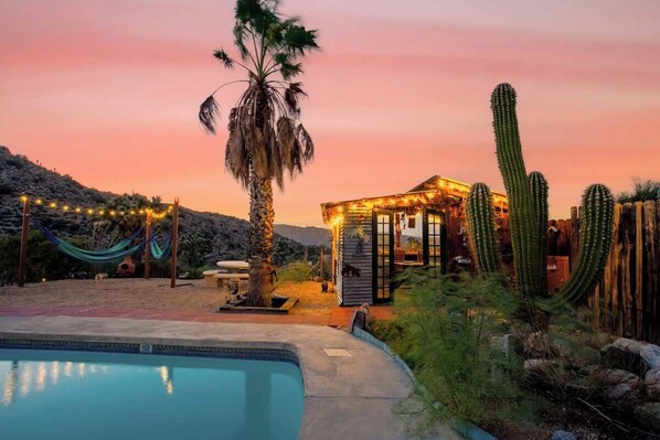 Tastefully decorated to match the lush setting, our spacious house has everything you need to have fun. Relax in the pool under the sun, snuggle in the hammocks under the stars, play pool with friends in our game room, hike in the beautiful National Park, or visit the shops and restaurants in downtown Joshua Tree. Come enjoy yourself and get ready for your next adventure!!
