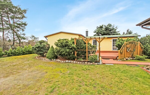 Ett av två semesterhus som ligger separat på ägarens 2.500 m² stora, vackert anlagda bostadsfastighet i ett centralt läge. Östersjöstranden ligger ca 10 minuters promenad bort. Det finns butiker och restauranger inom några hundra meter.