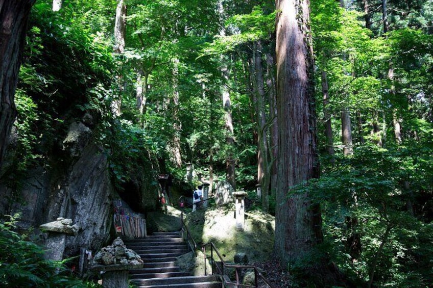 - Det finns många stensteg vid Yama-dera (Hojusan Risshaku-ji Temple). Att bära skor som är lätta att gå i rekommenderas