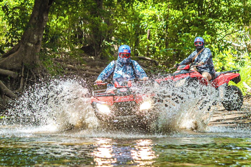 En perfekt tur för både nybörjare och erfarna förare, att köra ATV offroad ger dig den ultimata möjligheten att se de dolda pärlorna i de omgivande områdena. Du kommer att utforska den vackra torra tropiska skogen i bergen där du troligen kommer att se apor, leguaner och mer som hänger i träden! Var beredd på att bli smutsig! Du kommer också att få utsiktspunkter längs vägen med fantastisk utsikt över Tamarindo Bay. Vuxna resenärer kan köra själva, medan barnfamiljer kan sätta sig på dubbla ATV:er.