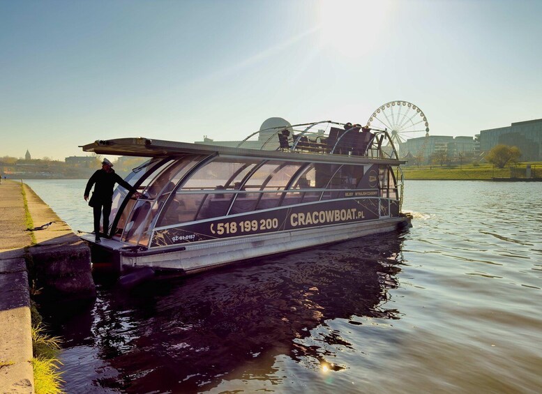 Hör historien om Krakow från ett modernt båtljudsystem och titta på en multimediapresentation på en 50-tumsskärm. Titta på Krakow från floden och se monument som Wawels försvarsmurar med panoramautsikt över det kungliga slottet, katedralen och den ikoniska silhuetten av en drake.
