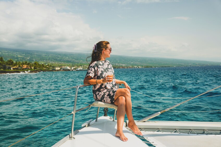 Lyxig Kona Dolphin Sail och snorkling ombord på No Wiki med max 6 passagerare