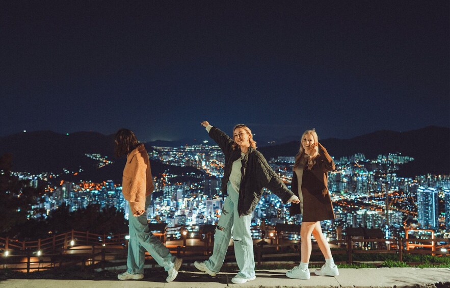 Utforska de vackraste topp 4 nattutsiktspunkterna i Busan på bara en natt - Gamcheon Culture Village, Nuribaragi Observatory, Cheonghak Waterside Park och Hwangryeongsan Mountain. Vid varje attraktion kan du uppleva och njuta av stadens gnistrande nattvyer och dessutom hjälper din professionella lokala fotograf dig att få en bild tagen av dig med det vackra landskapet.