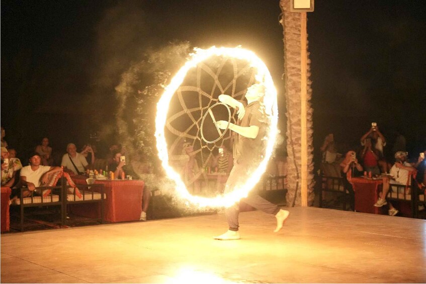 Detta alternativ inkluderar fyrhjulingstur i 1 timme, kort kamelritt, vatten samt hämtning och lämning med privat fordon. Middag och shower ingår inte i detta alternativ.