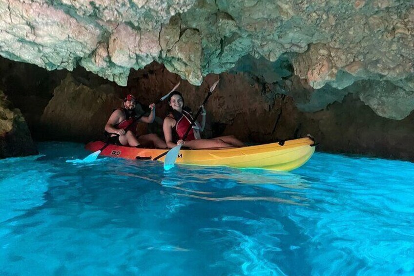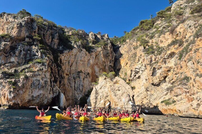 Kajakpaddling runt Cala Granadella, kristallklart vatten på en drömutflykt