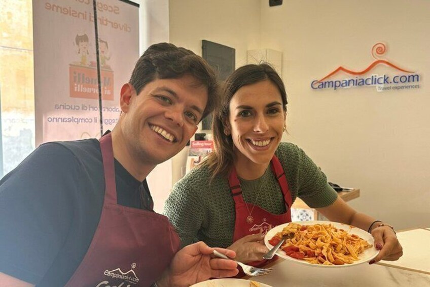 Sedan börjar vi ha roligt med att lära oss alla hemligheter att känna till och skapa läckra traditionella napolitanska rätter baserade på färska och säsongsbetonade produkter.