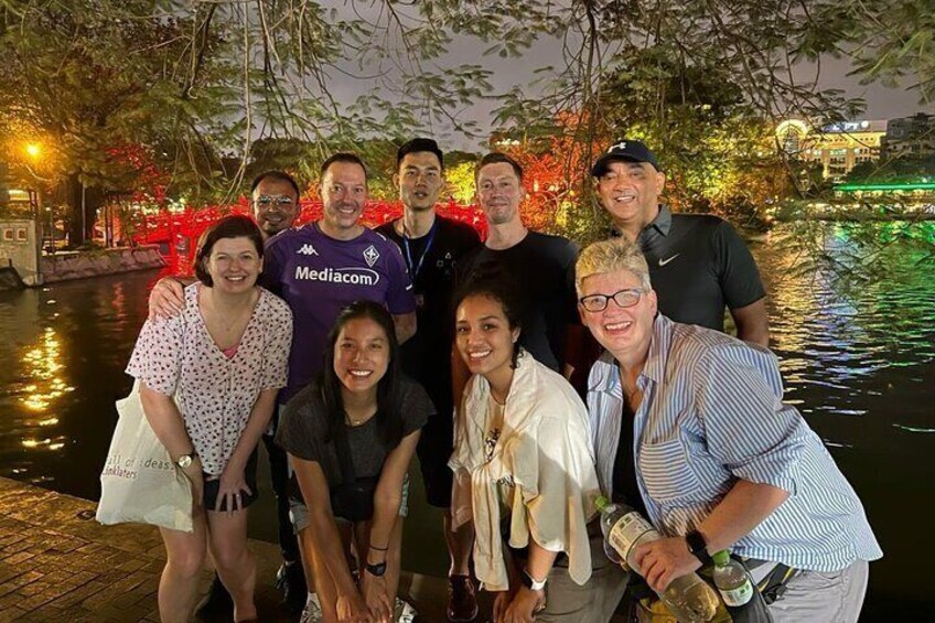 Liten grupp Hanoi gatamatstur med en riktig mat