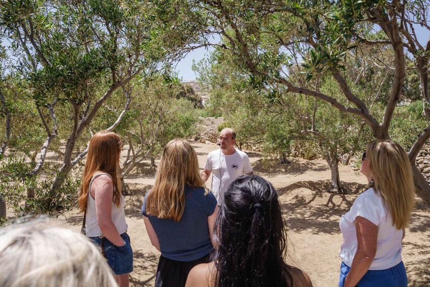 Efter rundturen i vingårdarna kan ni njuta av några provsmakningar av utmärkta ekologiska viner som odlas på plats. Kombinera dessa viner med några läckra mykoniska delikatesser som kommer från lokala leverantörer.