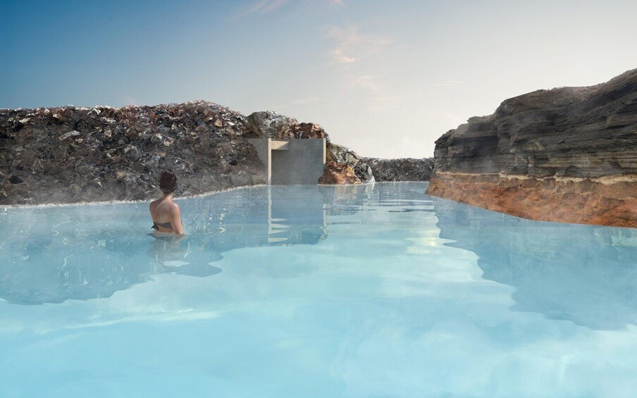 • Bada i en pool med geotermiskt vatten från 2 500 meters djup.