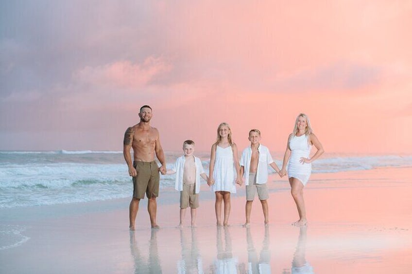 1 timme solnedgång Myrtle Beach: 1 timme privat fotografering som fångar dina bästa ögonblick i Myrtle Beach. Denna session omfattar 45 fullt redigerade bilder.