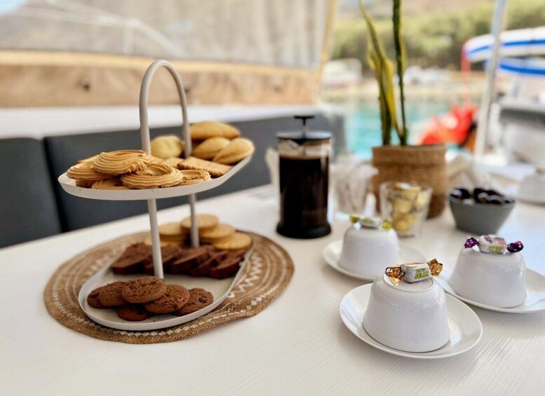 Efter en välförtjänt paus fortsätter äventyret på eftermiddagen med en halvprivat lyxkryssning med katamaran från Heraklion till Dia Island. Sätt segel på det kristallklara vattnet i Egeiska havet för en 5-timmars solnedgångsresa, komplett med en allomfattande öppen bar och en utsökt medelhavsmiddag serverad ombord. Njut av en rad olika aktiviteter, inklusive snorkling, SUP (stand-up paddleboarding) och fiske, eller koppla bara av och njut av den vackra solnedgången