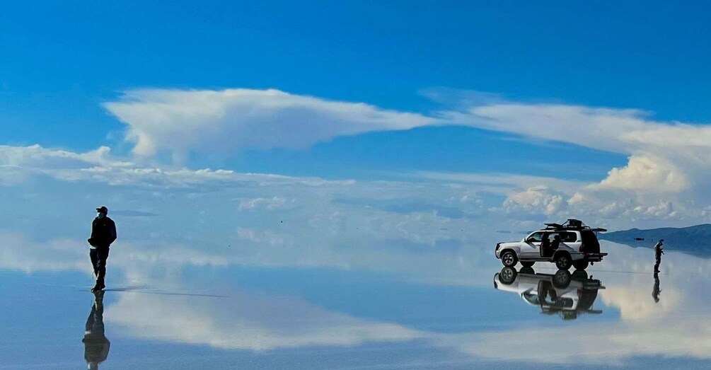 Senare kan du titta på stjärnorna som speglar sig i saltöknen.