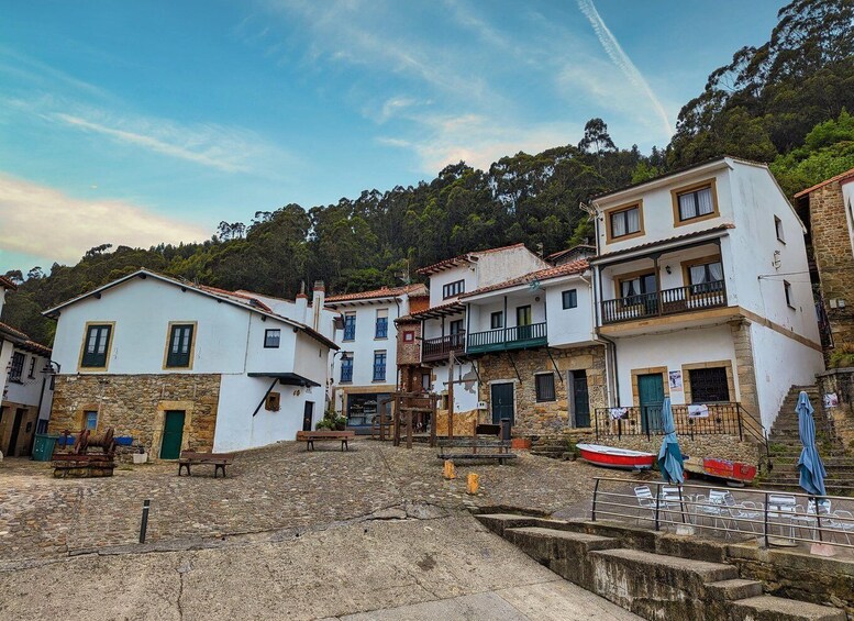 Slutligen besöker vi Tazones, en charmig fiskeby som är känd för sina färgglada hus och maritima tradition. Promenera genom de smala kullerstensgatorna, upptäck den historiska hamnen och upplev den autentiska atmosfären i en av Asturiens mest pittoreska kustbyar.