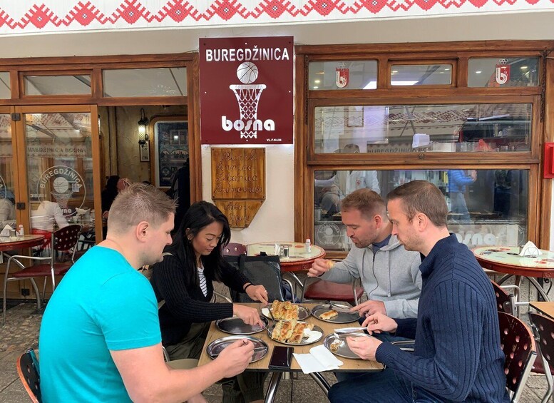 När det gäller maten kan vi inte lämna er hungriga. På den här turen får du möjlighet att se en av stadens mest berömda restauranger. Fördjupa dig i en värld av utsökta ostar, oförglömliga smaker av torkat och rökt kött och andra rätter som tillagas enligt recept som är flera hundra år gamla. Sist men inte minst kommer vi att besöka en av de äldsta pipbutikerna i Sarajevo - vi provar de mest utsökta rätterna från ägarna - och sudzukice i denna lokala restaurang utsågs till den bästa sudzuk av Sarajevo matordbok i 20the. Som grädde på moset kan du smaka på utsökt handgjord baklava, serverad med en sann njutning - bosniskt kaffe. Vårt mål med denna resa är att berika dig med upplevelsen av Sarajevo genom de lokala medborgarnas ögon.