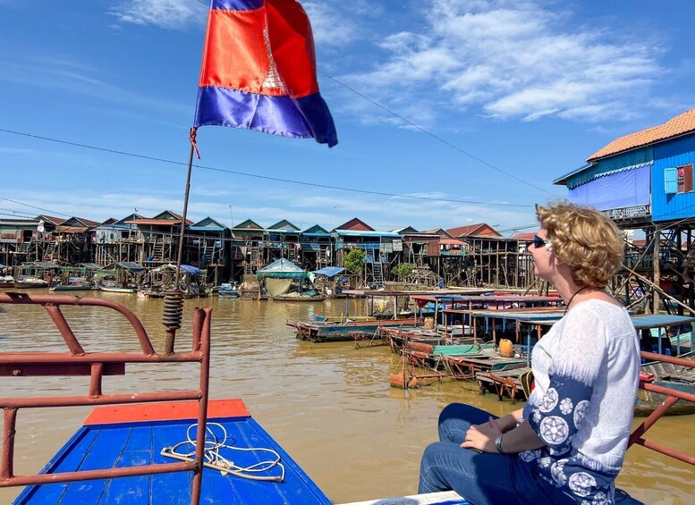 Fortsätt resan med en båttur till Kampong Phluk, en flytande by. Bevittna det dagliga livet för familjer som är beroende av fiske och bor i färgglada hus på pålar. Båttur längs den översvämmade skönheten i en mangroveskog, hem för olika arter, inklusive krabbätande makaker.